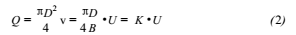 式(1)說(shuō)明,導(dǎo)體在磁場(chǎng)內(nèi)作切割磁力線運(yùn)動(dòng),導(dǎo)體兩端產(chǎn)生的感應(yīng)電動(dòng)勢(shì)的大小與磁感應(yīng)強(qiáng)度B成正比,與導(dǎo)體的長(zhǎng)度D成正比,與導(dǎo)體運(yùn)動(dòng)的速度v成正比。由式(2)可知液體的體積流量與感應(yīng)電動(dòng)勢(shì)成正比,這就是測(cè)量除鹽水流量用流量計(jì)的設(shè)計(jì)原理。