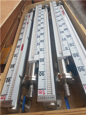 6.調試時應先打開上部引管閥門,然后緩慢開啟下部閥門,讓介質平穩進入主導管(運行中應避免介質急速沖擊浮子,引起浮子劇列波動,影響顯示準確性),觀察磁性紅白球翻轉是否正常,然后關閉下引管閥門,打開排污閥,讓主導管內液位下降,據此方法操作三次,確屬正常,即可投入運行(腐蝕性等特殊液體除外);