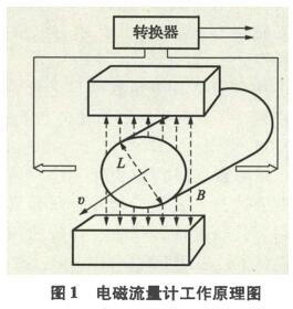 式中:Q為被測(cè)介質(zhì)體積流量,m3/s ; Ue為直流式管道地下水流量計(jì)用來(lái)測(cè)量流體橫越磁場(chǎng)時(shí)所感生的電動(dòng)勢(shì),V; B為磁感應(yīng)強(qiáng)度,T; L為電極間距,即測(cè)量管內(nèi)徑,m;。為液體平均流速,m/s ; k為修正系數(shù)。