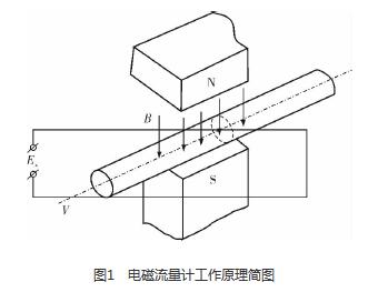 硝酸管道流量計是利用法拉*電磁感應定律設計的流量測量儀表,用于測量導電液體的體積流量。根據法拉*電磁感應定律,當導體切割磁力線運動時,導體內將產生感應電動勢Ex(圖1),方向根據右手定則確定,感應電動勢Ex的大小與磁場的磁感應強度B、傳感器管道的內徑D和流過導電液體的流速V成正比,B、D、V三者相互垂直,即Ex=BDV。