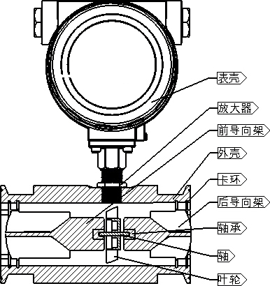 在管道中心安放一個渦輪,兩端由軸承支撐。當流體通過管道時,沖擊渦輪流量計葉片,對渦輪流量計產生驅動力矩,使渦輪流量計克服摩擦力矩和流體阻力矩而產生旋轉。在一定的流量范圍內,對一定的流體介質粘度,渦輪流量計的旋轉角速度與流體流速成正比。由此,流體流速可通過渦輪流量計的旋轉角速度得到,從而可以計算得到通過管道的流體流量。