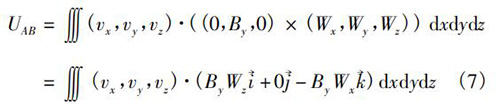 式中V為純水流量計傳感器測量空間;W→為權函數。在直角坐標系(x,y,z)中,式(5)可以轉換為
