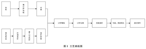 1.1 偏心爐+LF 爐雙聯(lián)冶煉工藝,鋼包冷調(diào)、熱裝燃?xì)饬髁坑?jì)工藝路線圖簡介如圖 1。