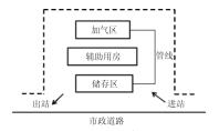 由于技術(shù)方面的原因,絕對(duì)的真空環(huán)境難以打造,導(dǎo)致LNG 使用到的真空設(shè)備不夠先進(jìn),難以實(shí)現(xiàn)絕對(duì)的隔熱,這就為熱交換創(chuàng)造了條件。圖2為加氣站工藝流程圖。