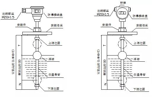2、安裝前需確認(rèn)被測液體內(nèi)及液位計周圍不應(yīng)有鐵磁性雜質(zhì),且介質(zhì)比重應(yīng)大于浮球的比重,否則會影響液位計正常工作。